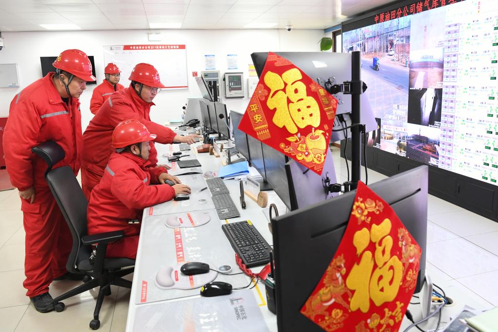新华社郑州2月16日电(记者马意翀)2月16日,河南濮阳市的大街小巷张灯结彩,一盏盏火红的灯笼随风轻舞,除夕浓浓的年味弥漫全城。当天早上,在储气库管理中心的生产调控室内,值班工作人员正通过“数智储气库一体化管控平台”,监测地下约3000米气藏的压力、温度、阀门状态等信息。